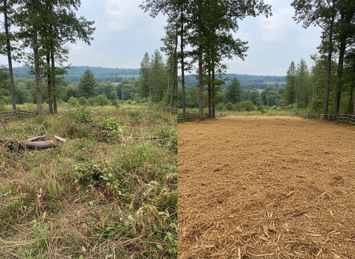 We operate a compact track loader with a forestry mulcher — purpose-built for forestry mulching. One machine, one pass, and your land is transformed. The mulch stays on site, suppressing weeds, retaining moisture, and enriching the soil naturally.